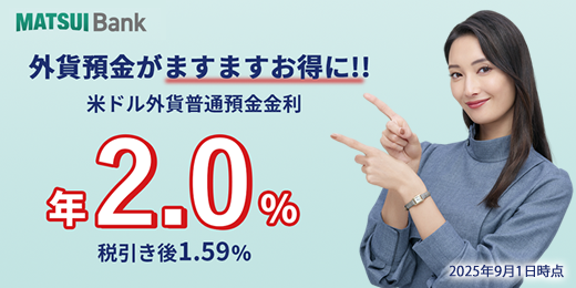 MATSUI Bankなら、円普通預金も米ドルの外貨普通預金も好金利。