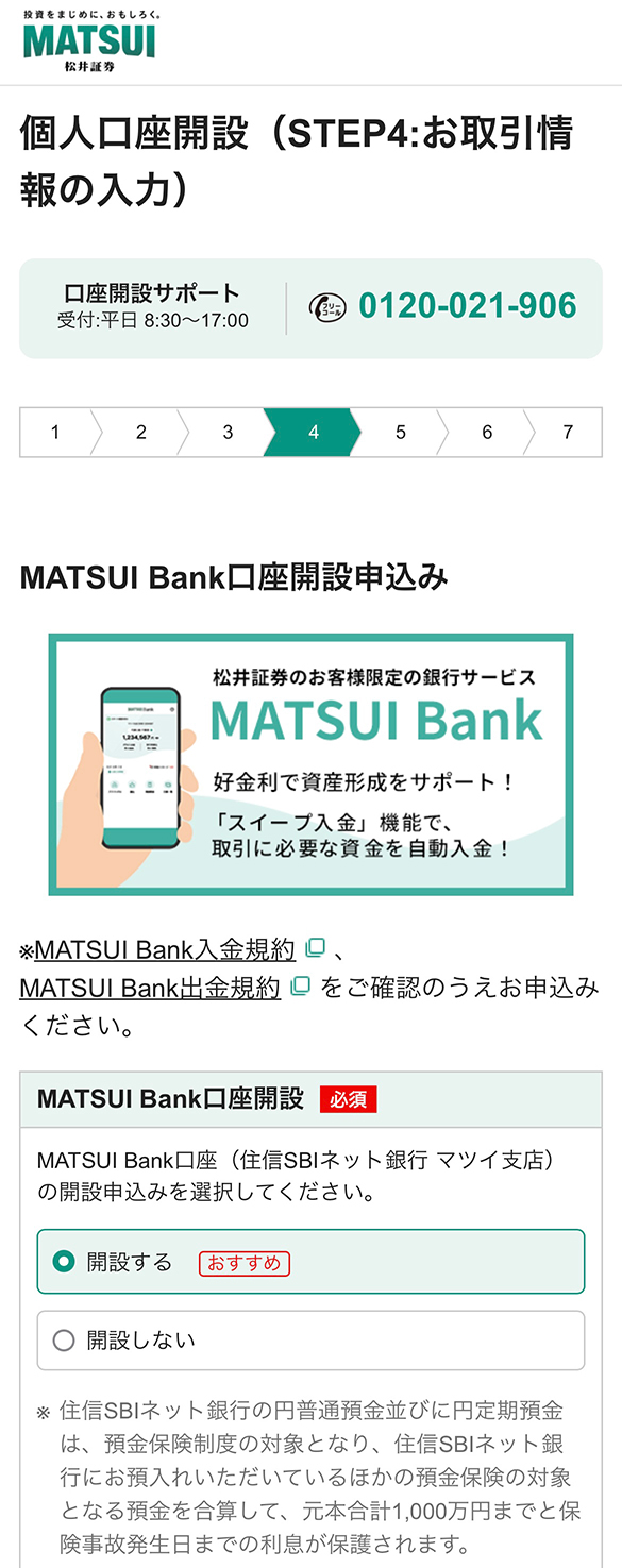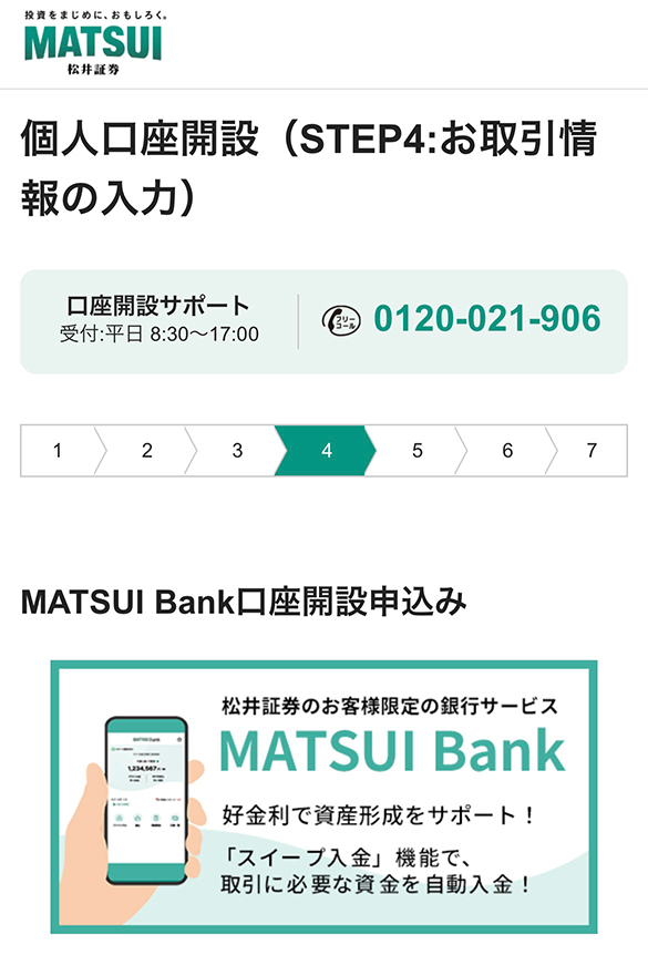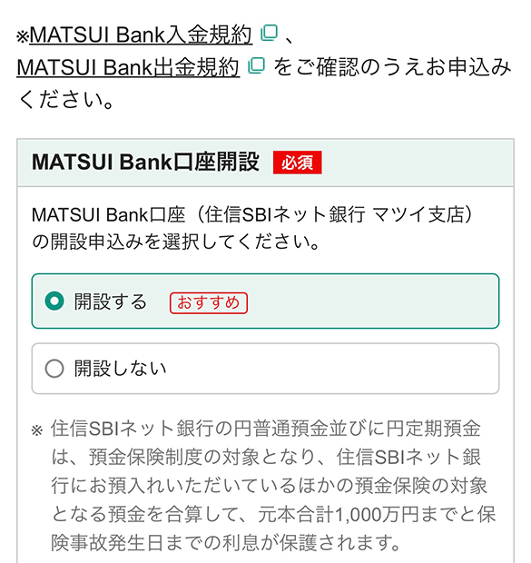MATSUI Bank口座の同時開設申し込み
