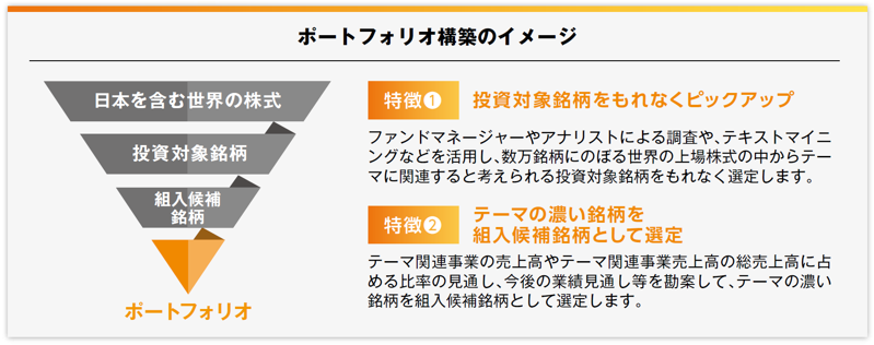 「iFreeActive ゲーム&eスポーツ」では、日本を含む世界のゲーム&eスポーツ関連銘柄に投資します。投資対象銘柄の選定にあたっては、テーマ関連事業の売上高やテーマ関連事業売上高の総売上高に占める比率の見通し等を勘案し、10~20銘柄程度を組入銘柄として選定します。