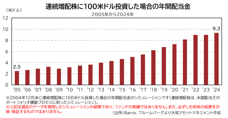 配当は企業の利益から支払われており、配当を増やし続ける企業の利益も継続して拡大していると考えられます。