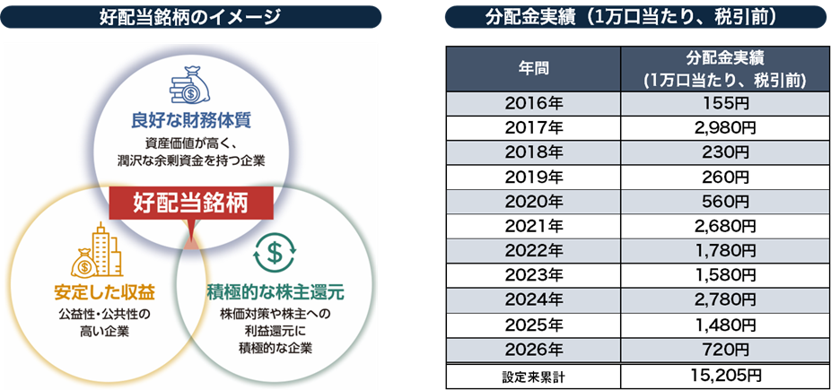 分配金額は委託会社が基準価額水準、市況動向等を勘案して決定します。ただし、分配対象収益が少額の場合には、分配を行わないことがあります。将来の分配金の支払いおよびその金額について保証するものではありません。市況動向および資金動向等により、上記のような運用が行えない場合があります。分配金の一部ないしすべてが、実質的には元本の一部払戻しに相当する場合があります。運用状況によっては、分配金額が変わる場合、あるいは分配金が支払われない場合があります。上記は、過去の実績・状況または作成時点での見通し・分析であり、将来の市場環境の変動や運用状況・成果を示唆・保証するものではありません。また、税金・手数料等を考慮しておりません。