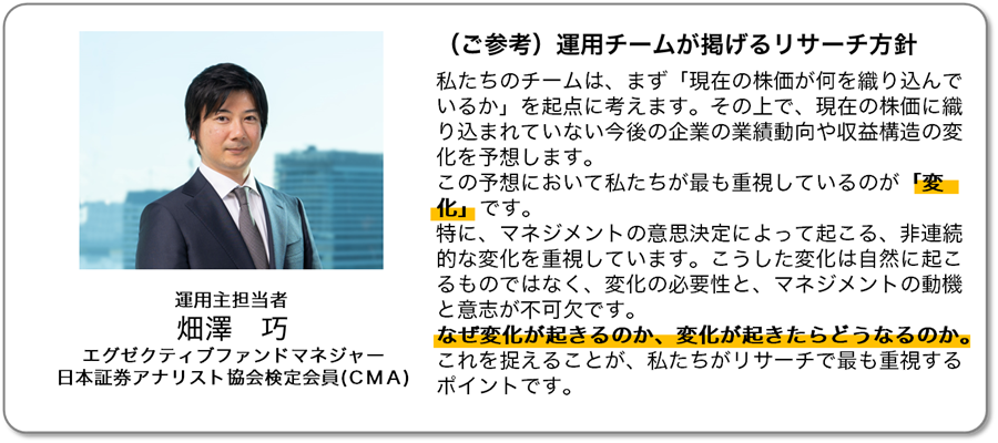 マネジメントアプローチにより「変化」に着目する投資戦略