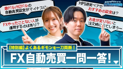 当社FXアナリストの鈴木翔が、FX自動売買設定を分かりやすく解説する動画を公開しています。レンジ、値幅、益出し幅など、動画を見ながらすぐに実践できる具体的な設定を紹介しています。本キャンペーンと併せてぜひご覧ください。