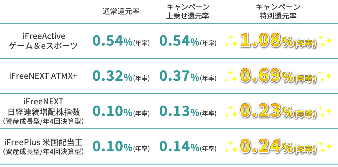 キャンペーン期間中は、対象6銘柄の通常のポイント還元率を大幅にアップします。お得なこの機会に、ぜひキャンペーンのご利用をご検討ください。