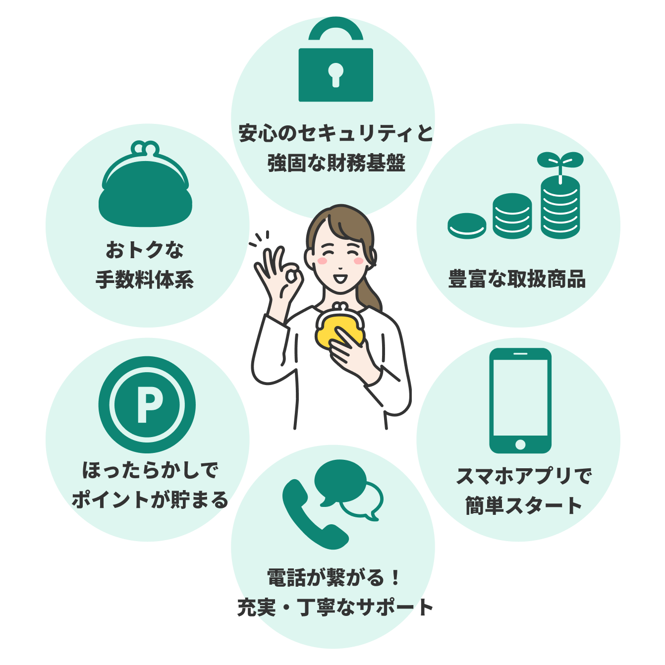 当社の商品・サービスから、口座開設の手続き方法、パソコンの操作まで、お客様の「困った」に、長い歴史で培われたノウハウで懇切丁寧に対応します。