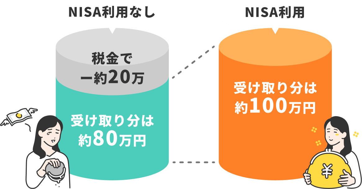 NISAの枠で投資をすれば、利益に対して税金はかかりません!