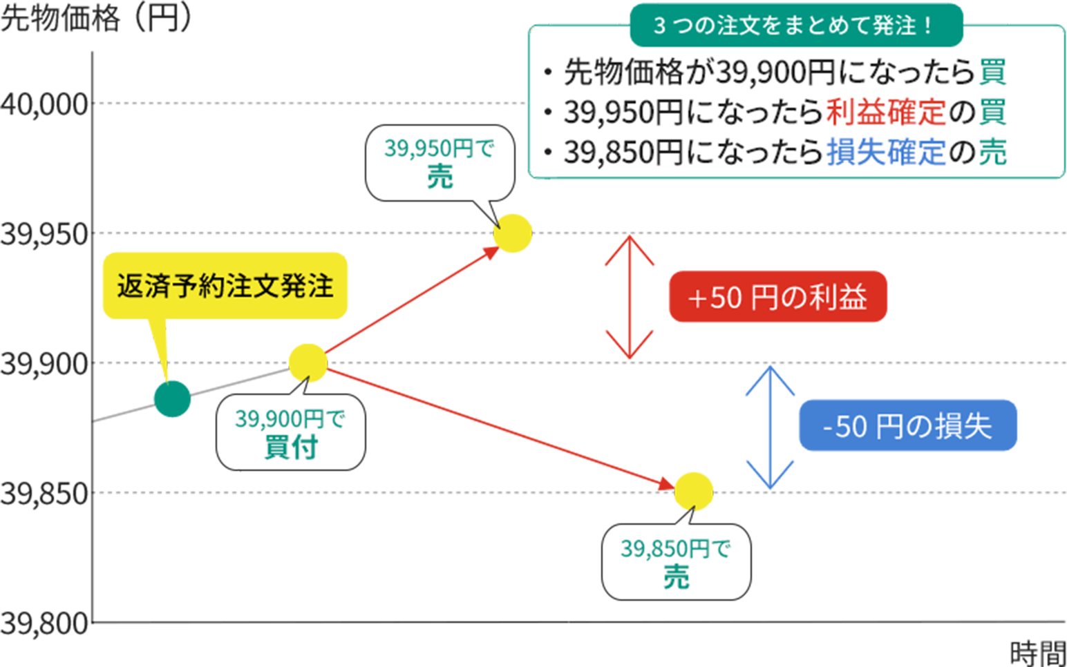 新規注文を発注する際に、返済注文の条件を設定(予約)できる注文方法です。