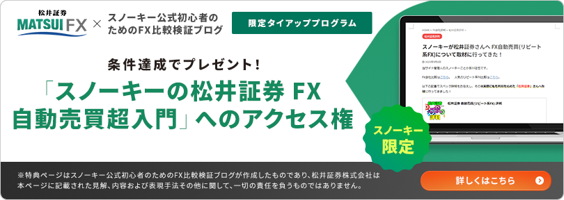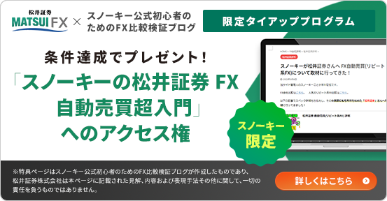 • ・アクセス権プレゼントは条件達成日の翌月上旬に、松井証券FXお客様サイト内【お知らせ】で、特別レポートにアクセスできるをご連絡することで行います。