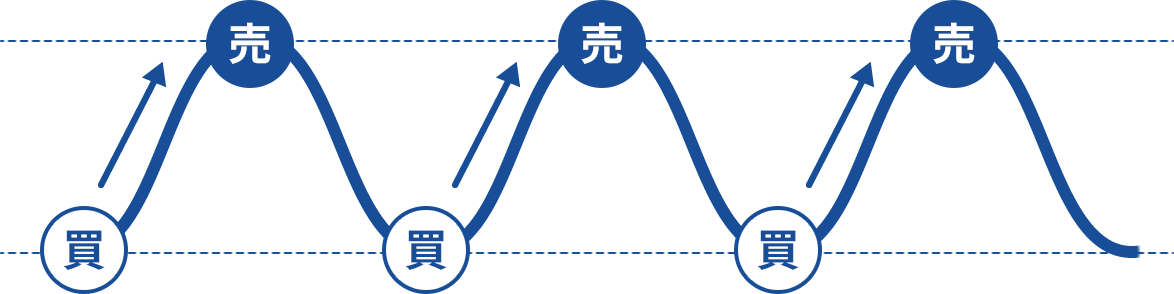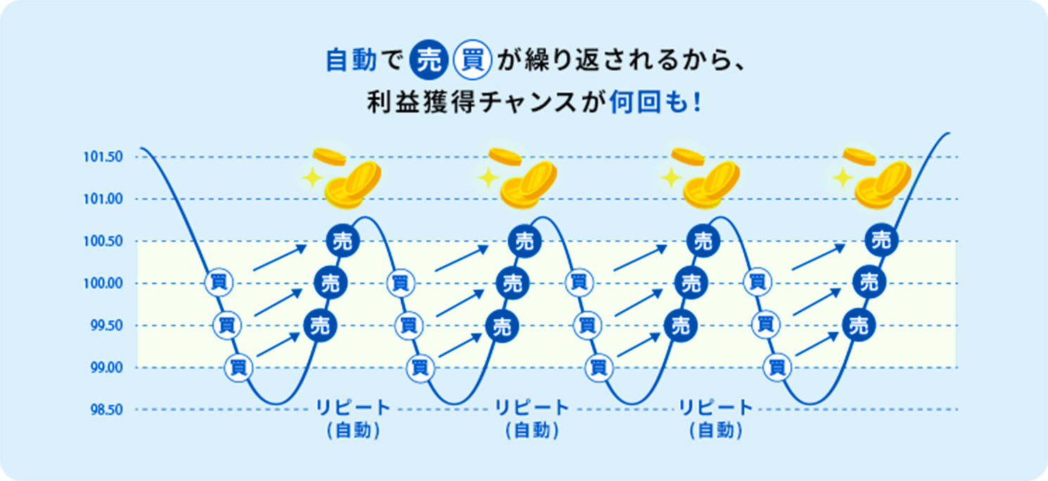 あらかじめ設定しておいたルールをもとに、特定の値幅で売買を繰り返す