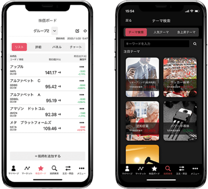 初めての方でも操作しやすいアプリ!いつでもどこでも、情報検索や分析、発注が簡単にできます。投資信託やFXは、100円からでも投資が可能です。