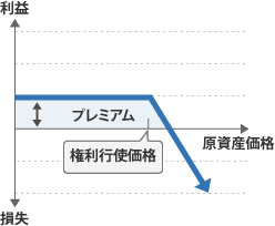 | プットオプションの買い手 | プレミアムに限定 | 原資産の価値がゼロになるまで増大 |