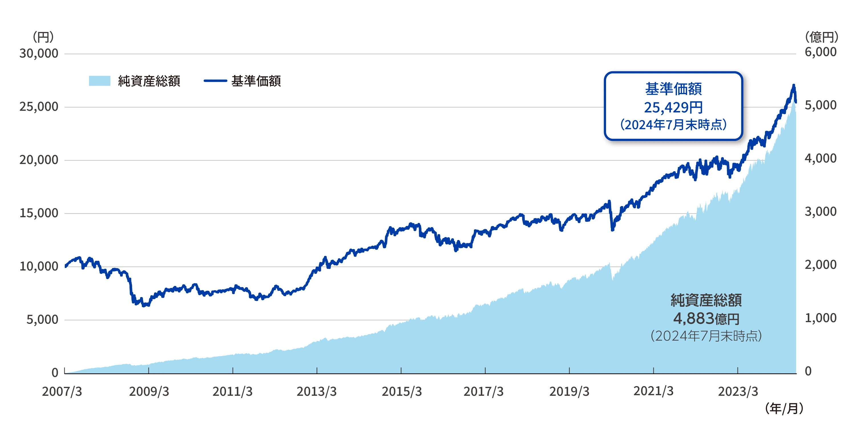 セゾン・グローバルバランスファンドは、多くの投資家のみなさまに支持され、運用開始から約17年で純資産総額4,000億円を超えるファンドに成長しました。