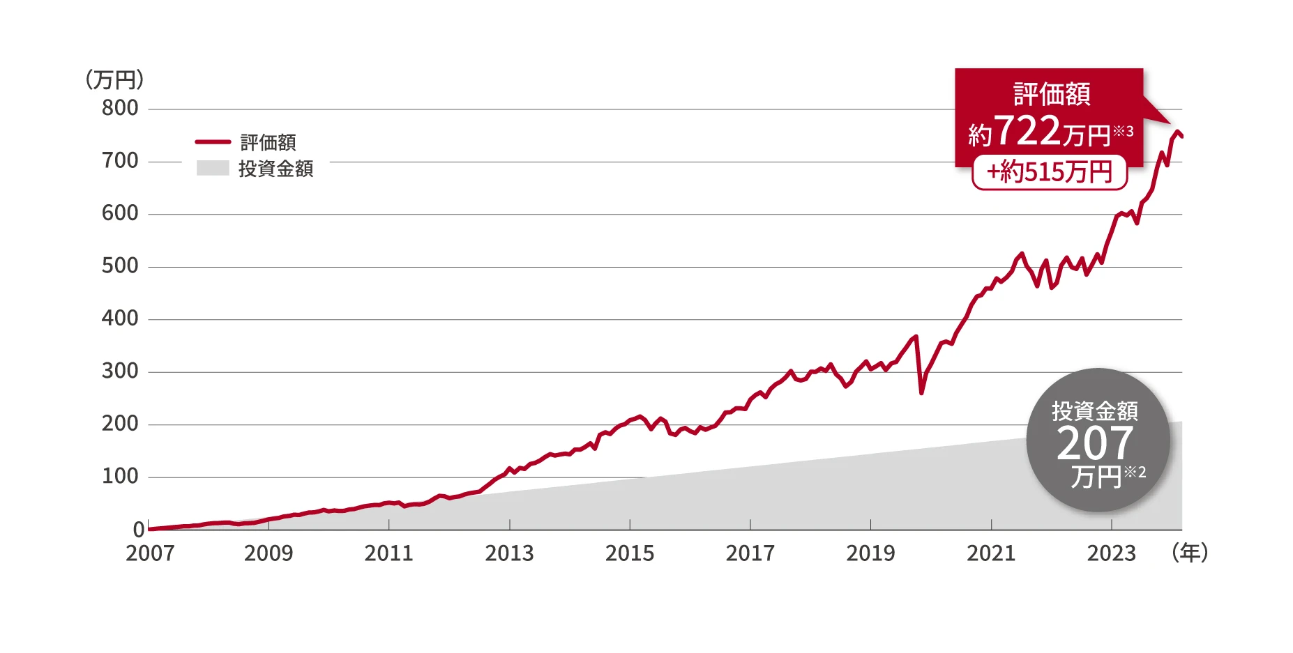 2007年5月から2024年7月まで毎月1万円を積み立てた場合※1