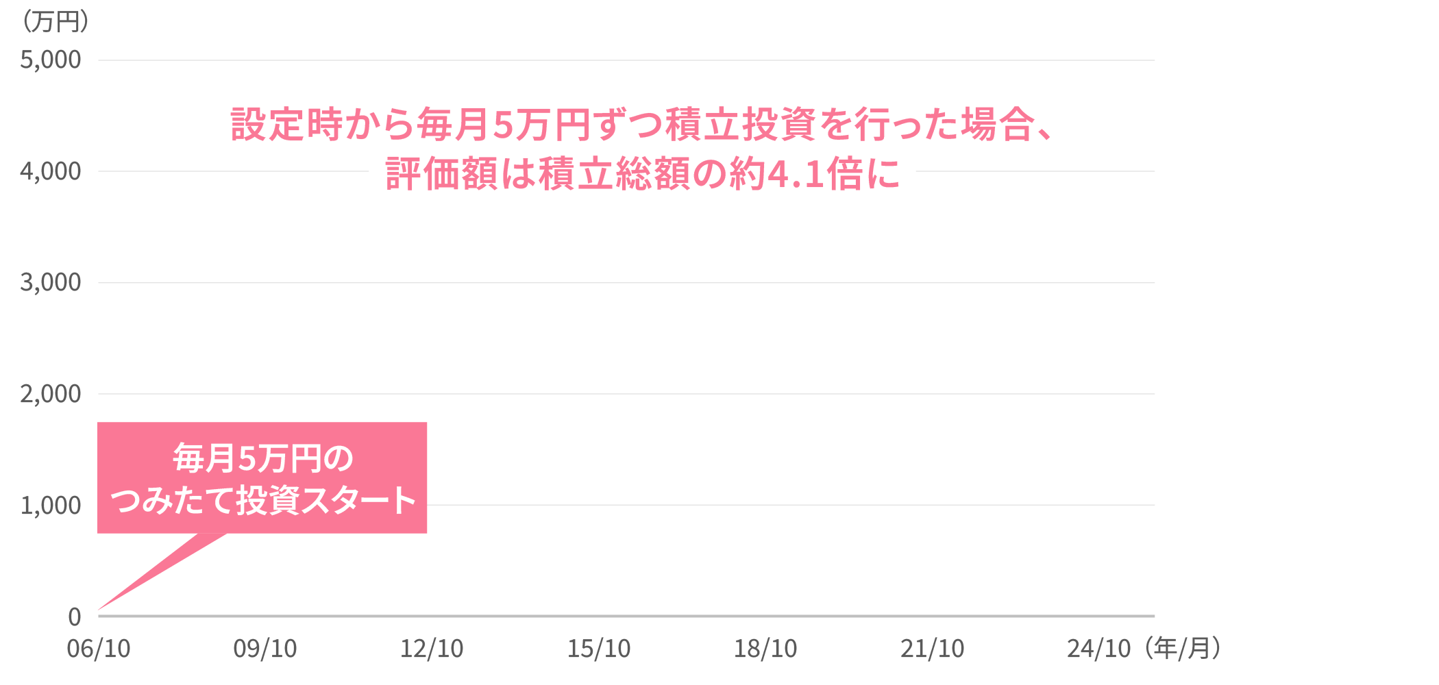 - (注2)上記は⼀定⾦額(毎⽉5万円)を当ファンドに毎⽉末に投資すると仮定して計算したシミュレーションです。ただし最終⽉は投資しません。当ファンドは税引前分配⾦再投資基準価額(1万⼝当たり、信託報酬控除後)のデータを使用しています。