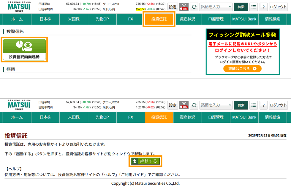- 【3】お客様サイトから投資信託お客様サイトを起動する