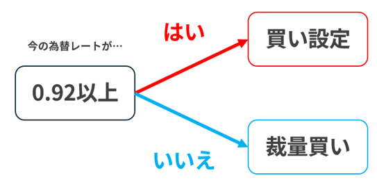 上の設定は、買いのレンジとしては0.91-0.945で、その中間点(≒全部ポジションを持ったと仮定した場合の平均レート)は0.925となります。0.92前後のタイミングではその平均レートよりも低く、またこの辺りからはスイスの警戒度も大きく上がり、実際に過去のチャートで見ても反発することが多いので、0.92前後以下であれば、裁量買いでしばらくホールドするのが良いと考えています。