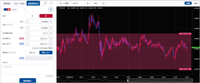 | 注文レンジ | :0.91000~0.94500(合計注文本数:31) |