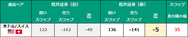 米ドル/スイスについてはスワップポイント改善により、今までよりもスワップポイント差を気にせずに取引できるようになります。