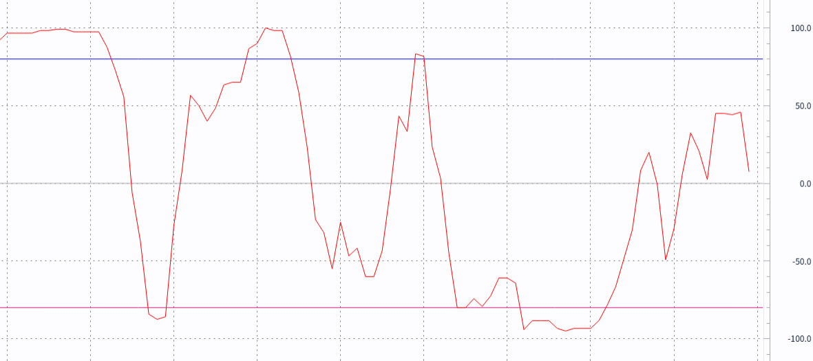 一般的には+80以上で「買われすぎ」、-80以下で「売られすぎ」と判断され、反転のサインとして活用されます。RSIやストキャスティクスと似ていますが、順位相関を用いるため反応が鋭いのが特徴です。短期・中期・長期と複数のRCIを組み合わせることで、相場の過熱感や転換点をより正確に捉えやすくなります。