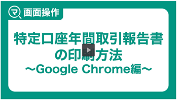 - 特定口座年間取引報告書は、特定口座での取引のみが対象です。一般口座、NISA口座、法人口座、先物OP取引、FX取引等は発行対象外です。あらかじめご了承ください。