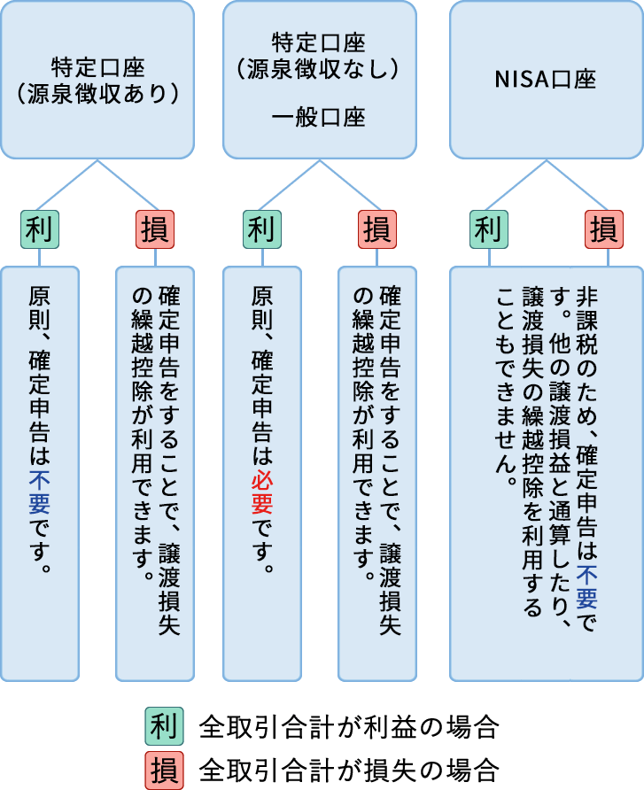 - NISA口座の年間損益に対する確定申告は不要です。