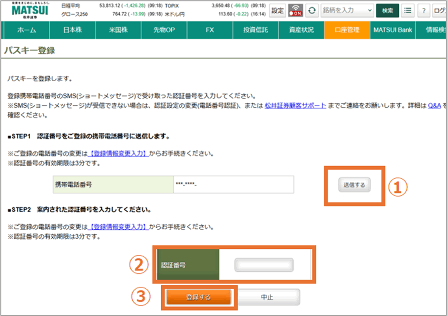松井証券の口座にログインする際に、電話番号認証またはSMS認証が不要となります。