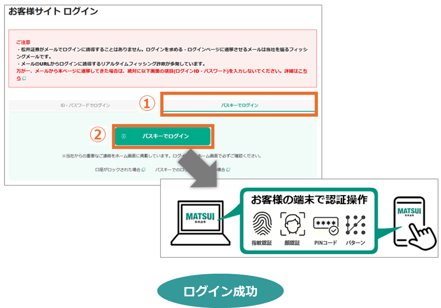 不正アクセス、フィッシング詐欺からお客様の資産を守るため、パスキー認証のご利用を強く推奨いたします。