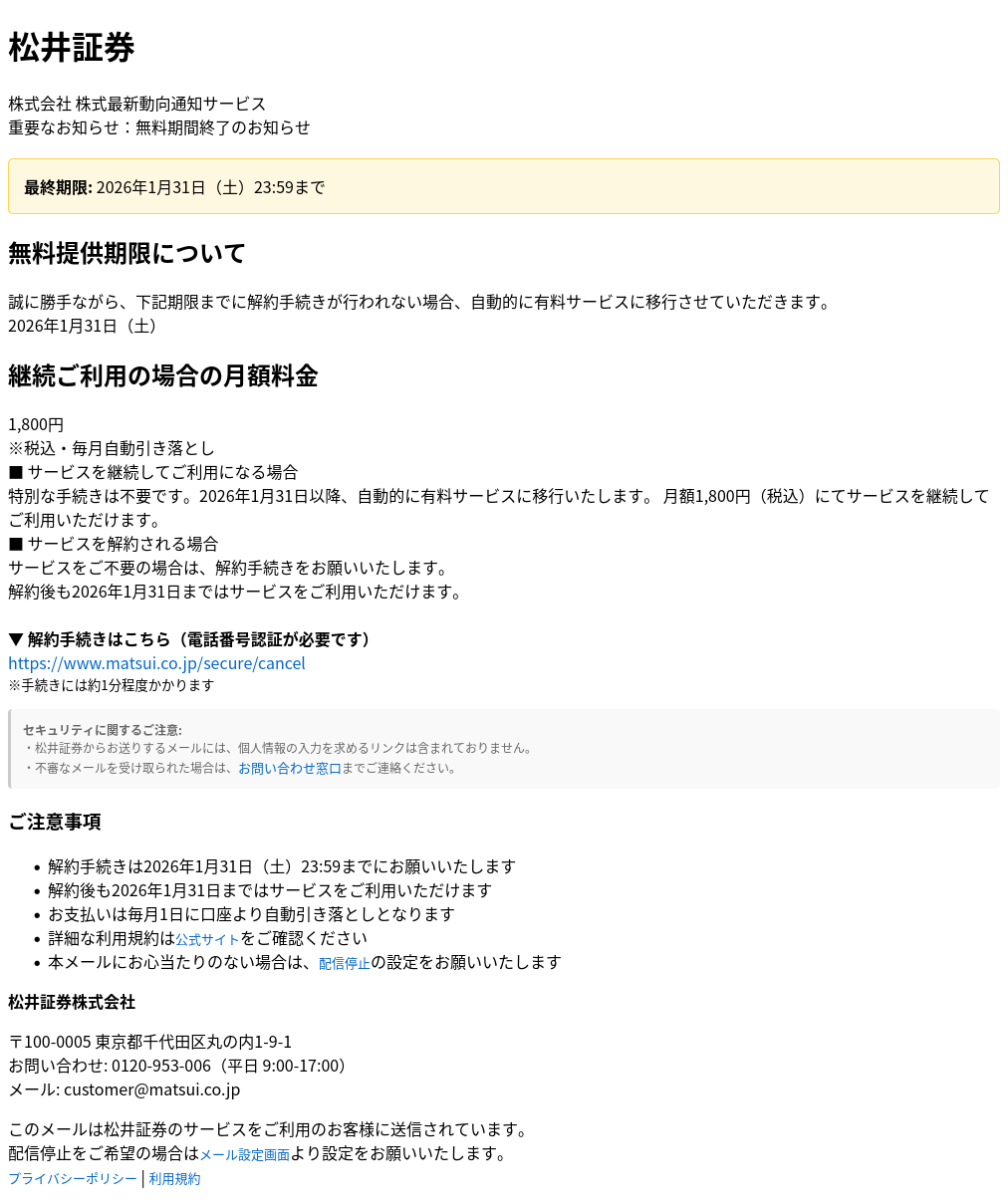 【松井証券】重要なお知らせ未読による一部機能の制限について