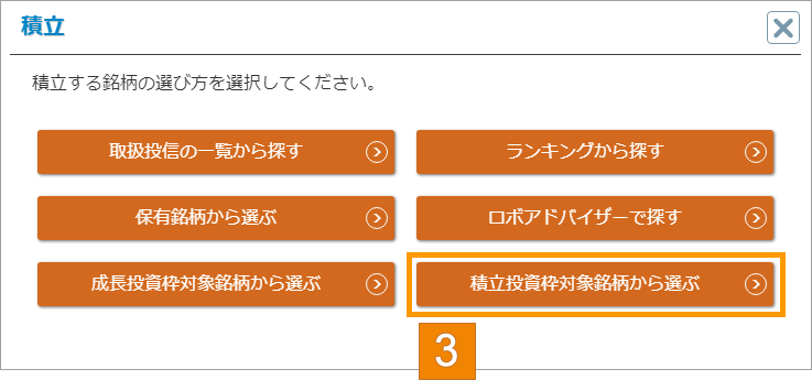 - 【3】「積立投資枠対象銘柄から選ぶ」を押す。
