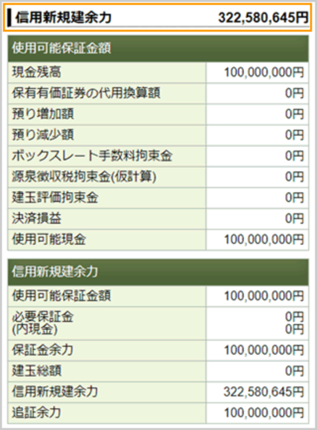 口座を開くと、自動的に預けている株式と現金が委託保証金になります