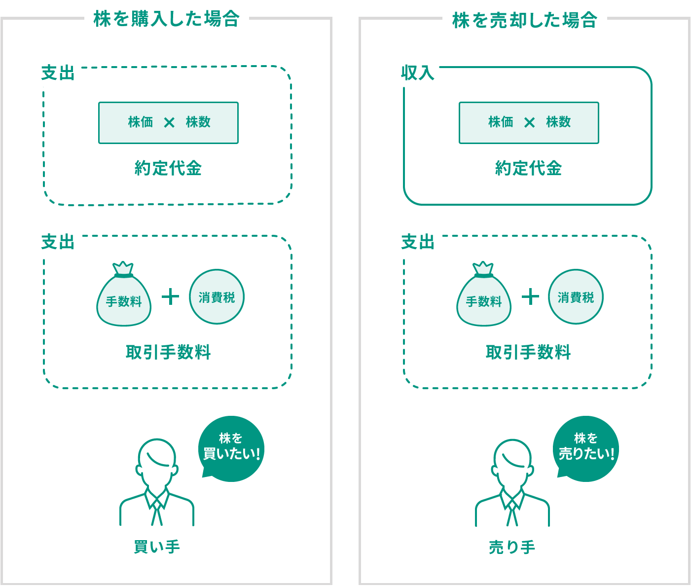売買が成立することを約定(やくじょう)といい、約定した株価×株数を約定代金(やくじょうだいきん)といいます。株の取引は、この約定に応じて取引手数料がかかります。