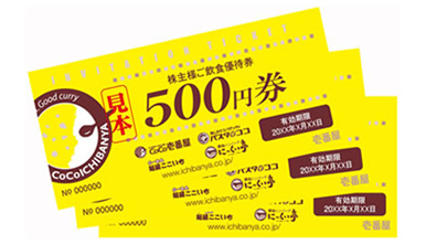 株主飲食優待券 1,000円相当(500円券×2枚)