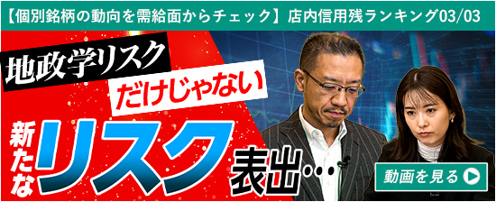 | 【店内信用残ランキング】中東情勢不安 |